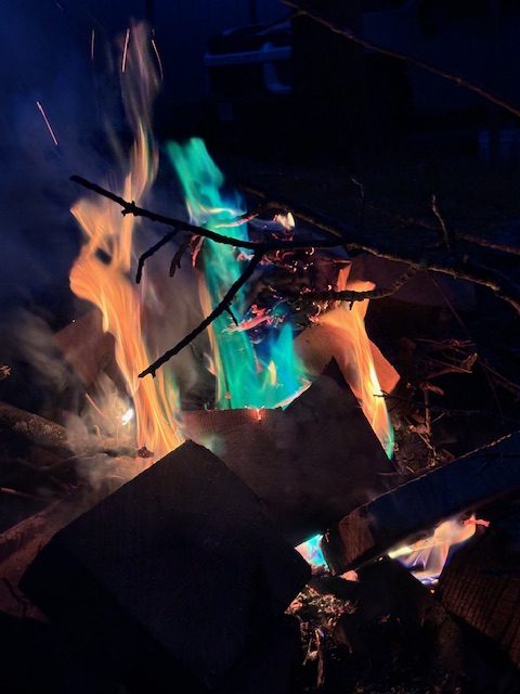 No campsite is complete without a loyal pup by your side and a mesmerizing fire that shifts colors before your eyes!